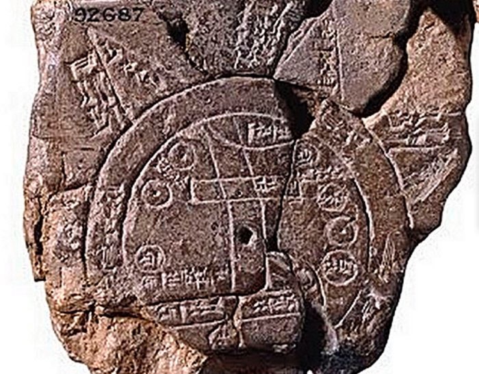 Прошли тысячелетия. Около 600 г. до н.э. уже вавилоняне стремились показать свой город и его расположение в большом мире. С тех времен сохранилась глиняная табличка, Imago Mundi, на которой образно изображен город Вавилон в виде круга, окруженного сушей, которая, в свою очередь, окружена рекой с семью островами (рис. 2).