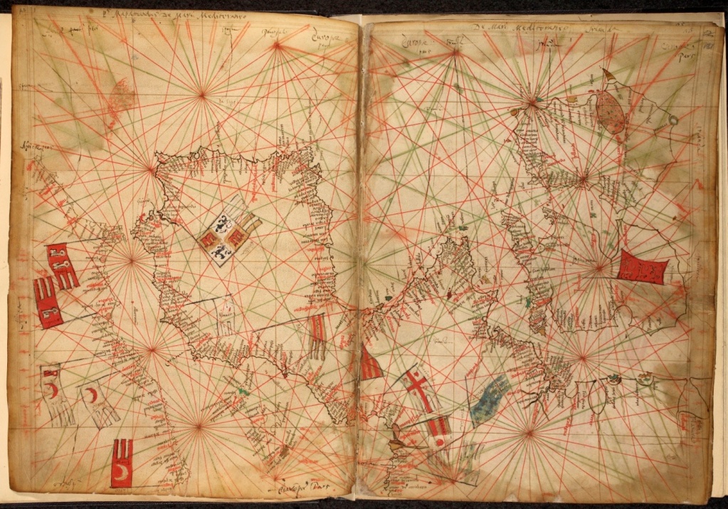 В начале 1300-х годов нашей эры итальянский географ Пьетро Весконте использовал полученные с помощью компаса углы и расчетные расстояния для отображения береговой линии с высокой степенью реалистичности и точности. Эти портуланы (навигационные карты) помогали морякам благополучно проходить вдоль от изрезанных берегов (рис. 3).